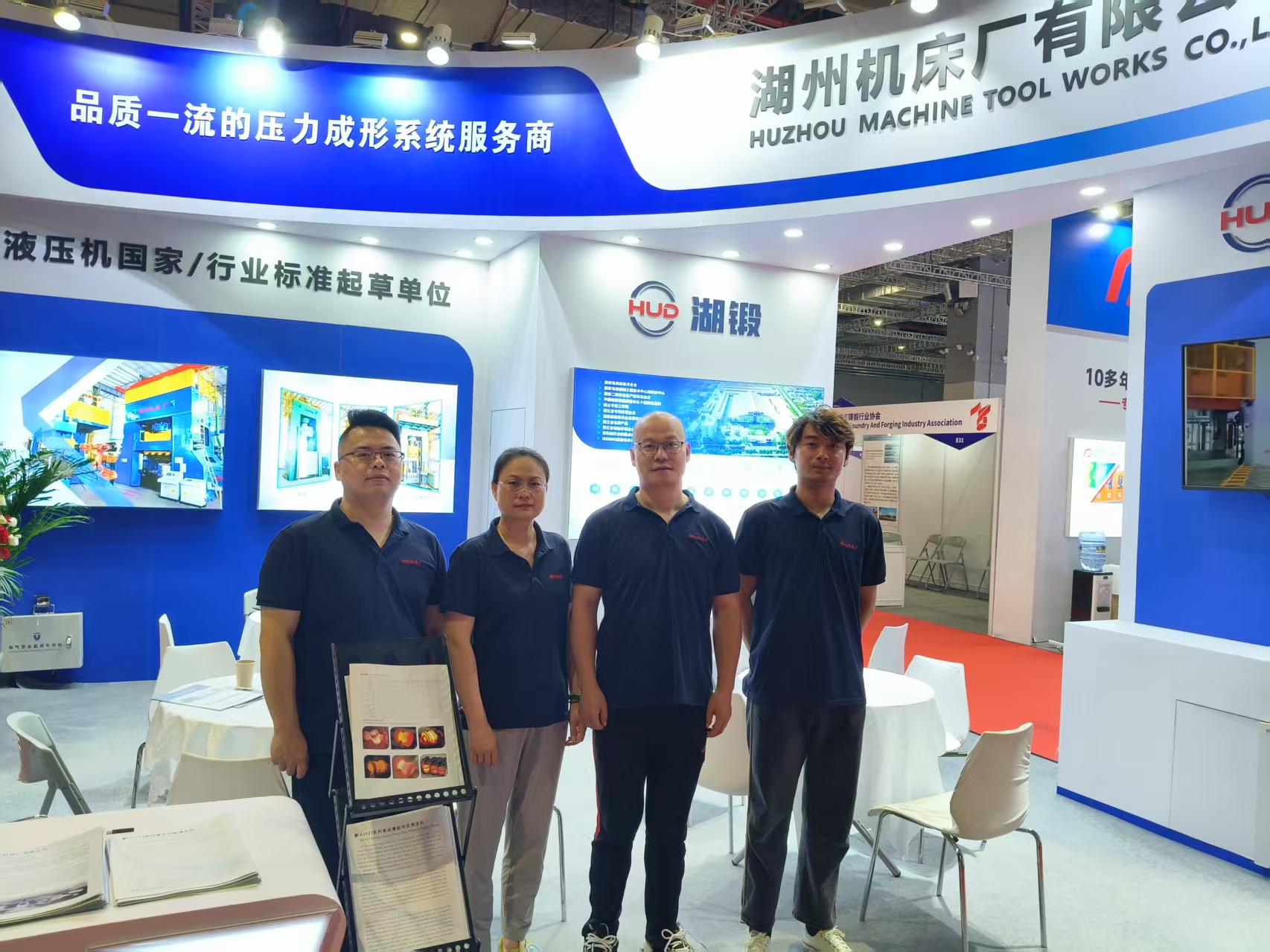 本次展會,湖州機床重點展示了自主研發的高效快鍛裝備及多向模鍛成形解決方案,聚焦鍛造效率提升、自動化、成套化、專業化及節能環保等關鍵方向,充分展現了公司在金屬成形工藝裝備制造領域的深厚技術積累與持續創新實力。